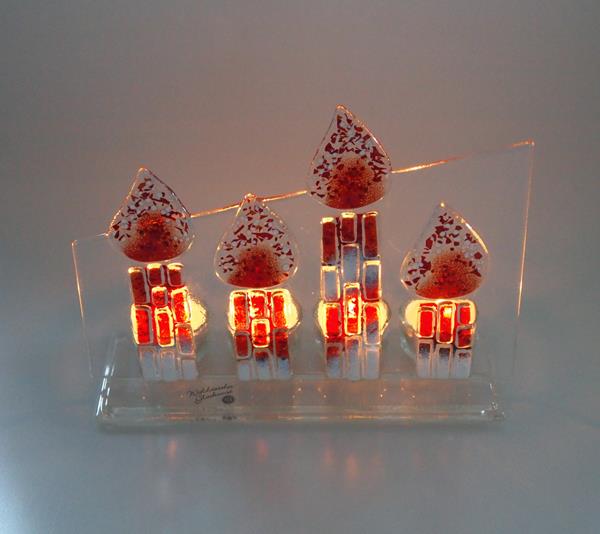 Weihnachten - die schönste Zeit des Jahres! Stimmungsvolle Kerzenlichter setzen sanfte Akzente und verzaubern mit ihrem Farbenspiel. Ein bezauberndes Highlight sind unsere Adventbögen, die zusätzliche Behaglichkeit in der stillen Zeit des Jahres bringen und auch als Alternative zum Adventkranz verwendet werden können. Unsere Glaskrippen sind nicht nur unter dem Christbaum eine wunderbare Weihnachtsdekoration. Alle Produkte werden in reiner Handarbeit und mit viel Liebe zum Detail gefertigt.
